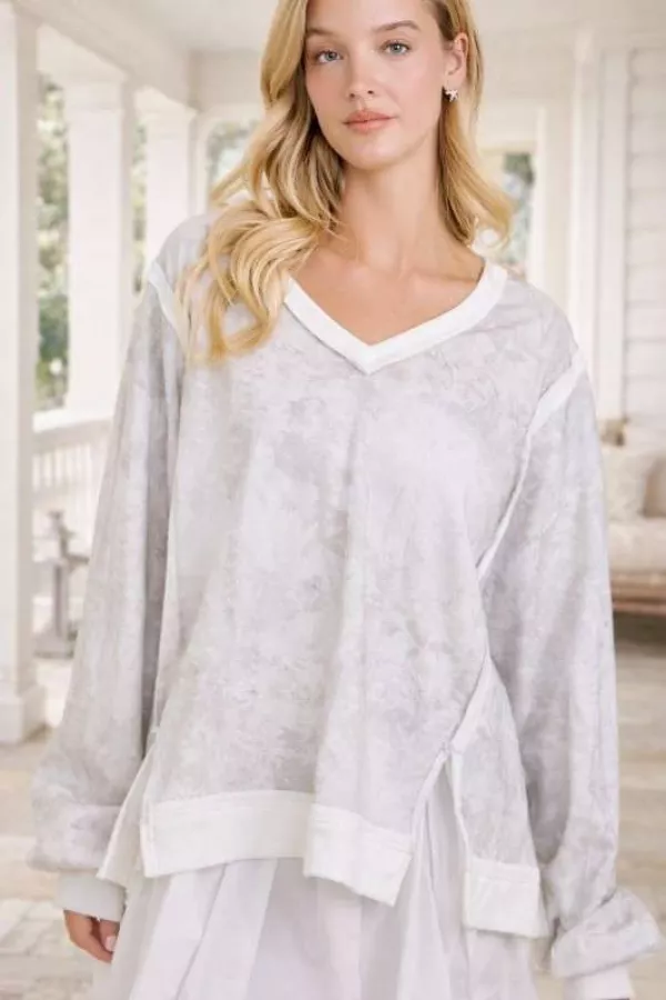 Camo wood print V-neck long sleeve oversized top 50%COTTON 50%POLYESTER