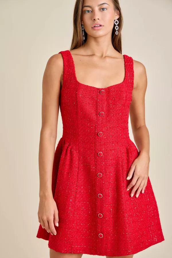 FIT AND FLARE SLEEVELESS TWEED MINI DRESS 100%POLYESTER