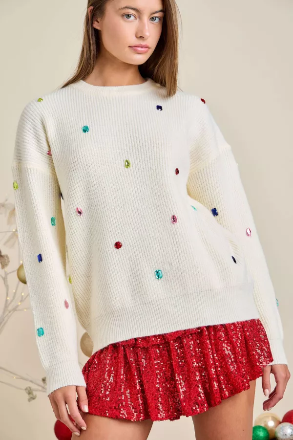 Funny Color Stone Trim Cozy Sweater 100% ACRYLIC