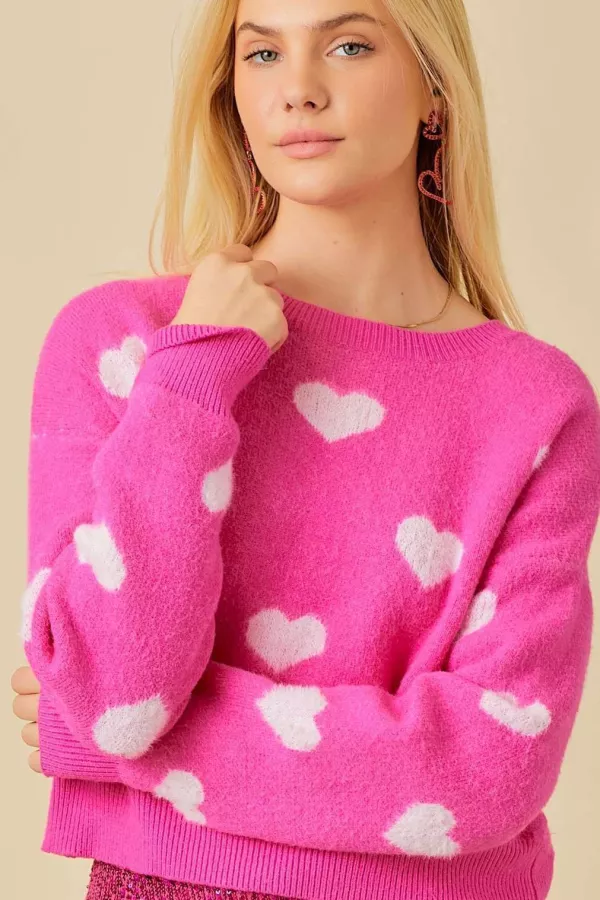 Stay cozy and sweet in this fuzzy mohair sweater featuring an all-over heart pattern. Soft and warm with a relaxed fit, it's perfect for Valentine's Day looks, casual winter outfits, or layering with skirts and denim for a cute and festive style. heart mohair sweater, valentine knitwear, fuzzy heart sweater, cute cozy sweater, holiday knit top, pink mohair pullover, soft heart sweater, festive valentine top