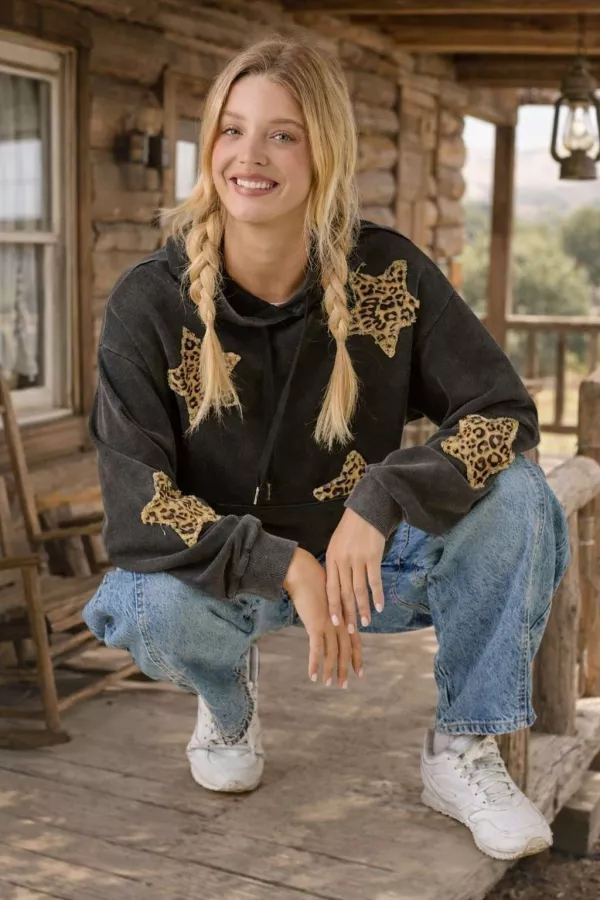 Mineral Wash Hoodie With Denim Star Patch 80%COTTON 20%POLYESTER CONT:97%COTTON 3%SPANDEX