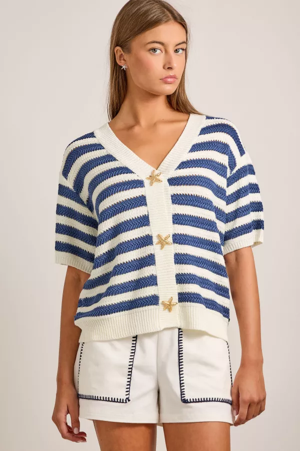 Nautical Stripe Cardigan with Starfish Buttons 100% ACRYLIC