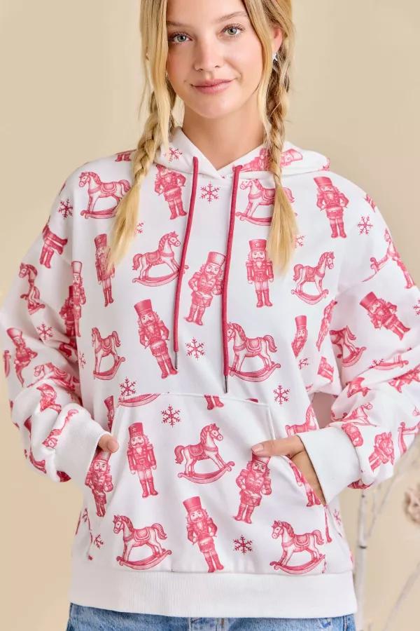 Add a playful twist to holiday casuals with our White Nutcracker Holiday Hoodie. Featuring red nutcracker, rocking horse, and snowflake motifs on a crisp white base, this cozy hoodie is perfect for holiday lounging, family gatherings, or festive gifting. - Holiday / Seasonal Christmas Hoodie Holiday Sweatshirt Festive Hoodie Nutcracker Hoodie Holiday Loungewear - Style / Detail White Hoodie with Red Print Nutcracker & Rocking Horse Hoodie All Over Print Holiday Hoodie Festive Graphic Hoodie Cozy Christmas Pullover - Occasion / Fit Holiday Parties & Gatherings Christmas Morning Outfit Seasonal Gifting Family Holiday Photos Casual Winter Capsule