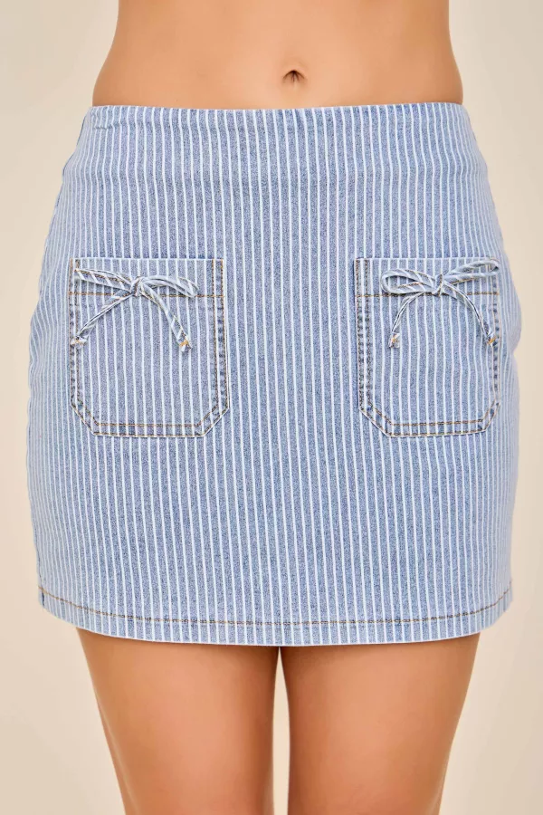 This pinstripe mini skort features built-in shorts for comfort and coverage, finished with functional utility pockets and tie details. A flattering everyday piece perfect for Southern boutiques, game day styling, and casual western-inspired looks.