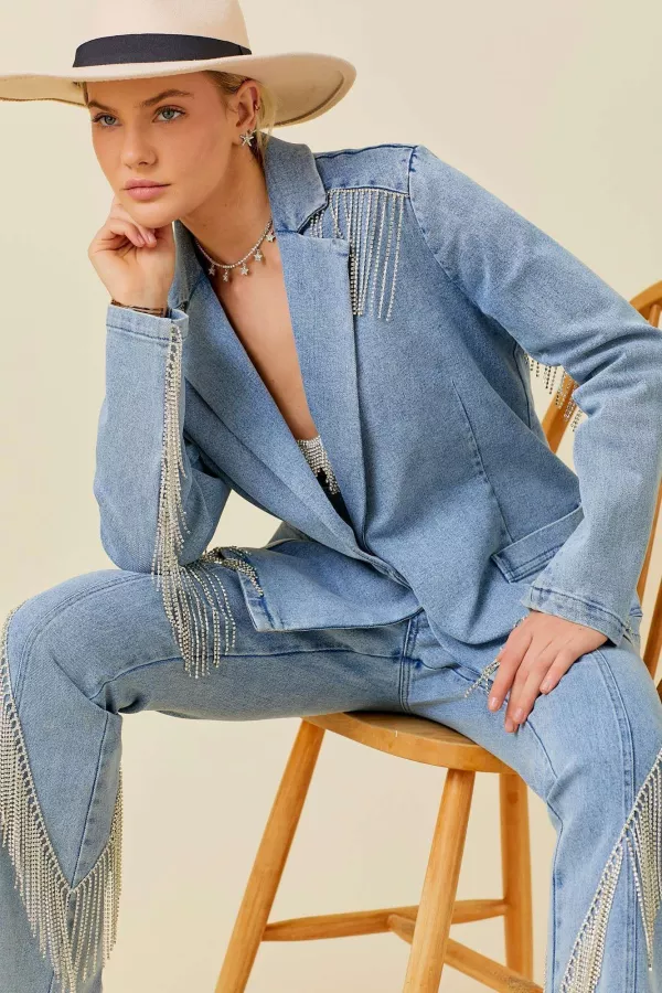 Rhinestone Fringe Denim Jacket