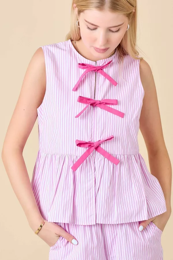 Round Neck Sleeveless Blouse With Contrasting Ribbon Tie MATCHING SET# CP81085 50% POLY 50% COTTON