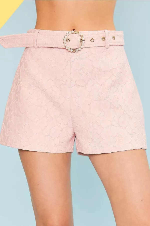 Side Zipper Waist Belt With Buckle Scallop Edge Lace Short JACKET #CJ61061 40% COTTON 35% RAYON 35% NYLON pink,white