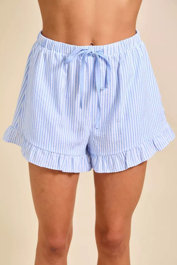 Stripe Ruffle Shorts With Contrasting Drawstring self : 50%cotton 50%polyester