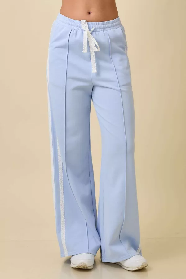 Wide Leg Pants With Center Piping Detail And Side Lace Trim Tape Detail 65% COTTON 35% POLY SET-CT34361